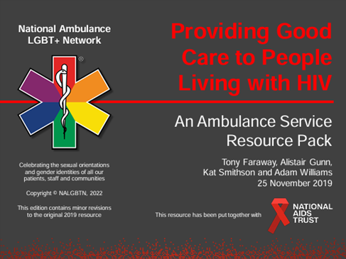 'The pack developed by the National Ambulance LGBT Network around delivering good care to patients with a HIV diagnosis is such a useful tool in terms of up to date guidance and support to front line clinicians, and to tackle health inequalities/challenge misinformation or discriminative behaviours.
