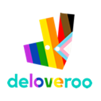 The cards have the rainbow 'deloveroo' logo on the reverse side, which is used by Deliveroo's own LGBT network.